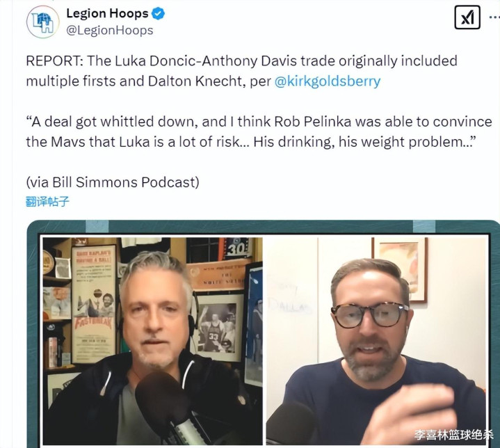 “我在湖人的消息人士告诉我,这个交易是被缩小了的,本来有克内克特、有多个首轮签,但是佩林卡做到了,他说服了独行侠,东契奇是有很多风险的,他的酗酒、他的体重问题。”戈兹贝里说道。